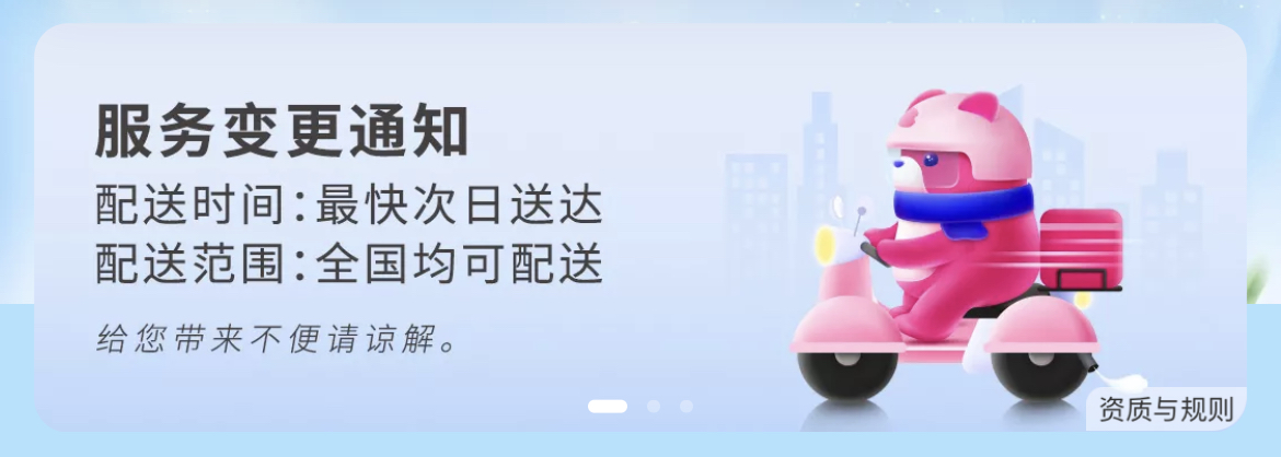 近来,每日优鲜App在主页发布置顶告诉,告诉显现配送时刻由本来的最快30分达改为仅最快次日达,配送规模为全国均可配送。